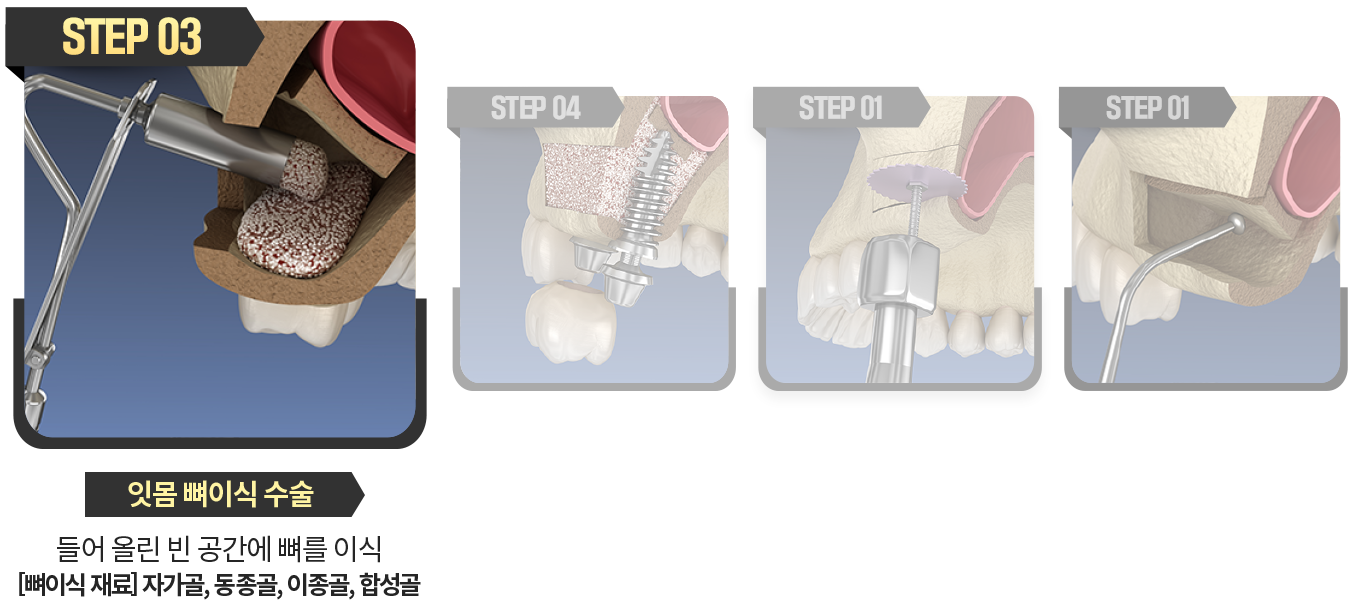 잇몸-뼈이식-수술-들어올린-빈공간에-뼈를-이식-뼈이식-재료-자가솔-인공뼈-합성골